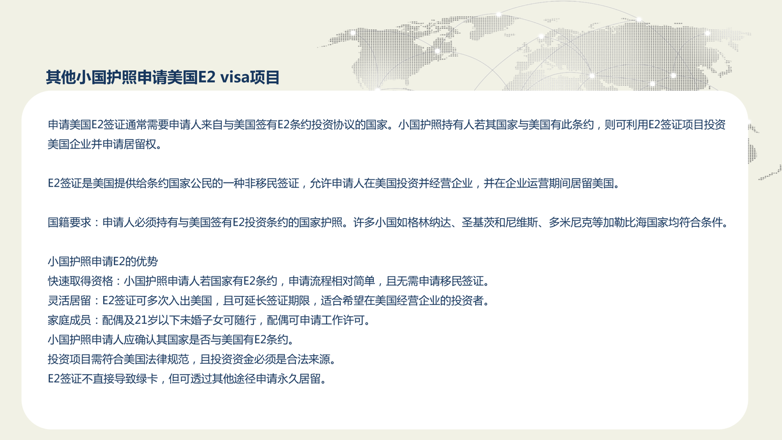 其他小国护照申请美国E2 visa项目