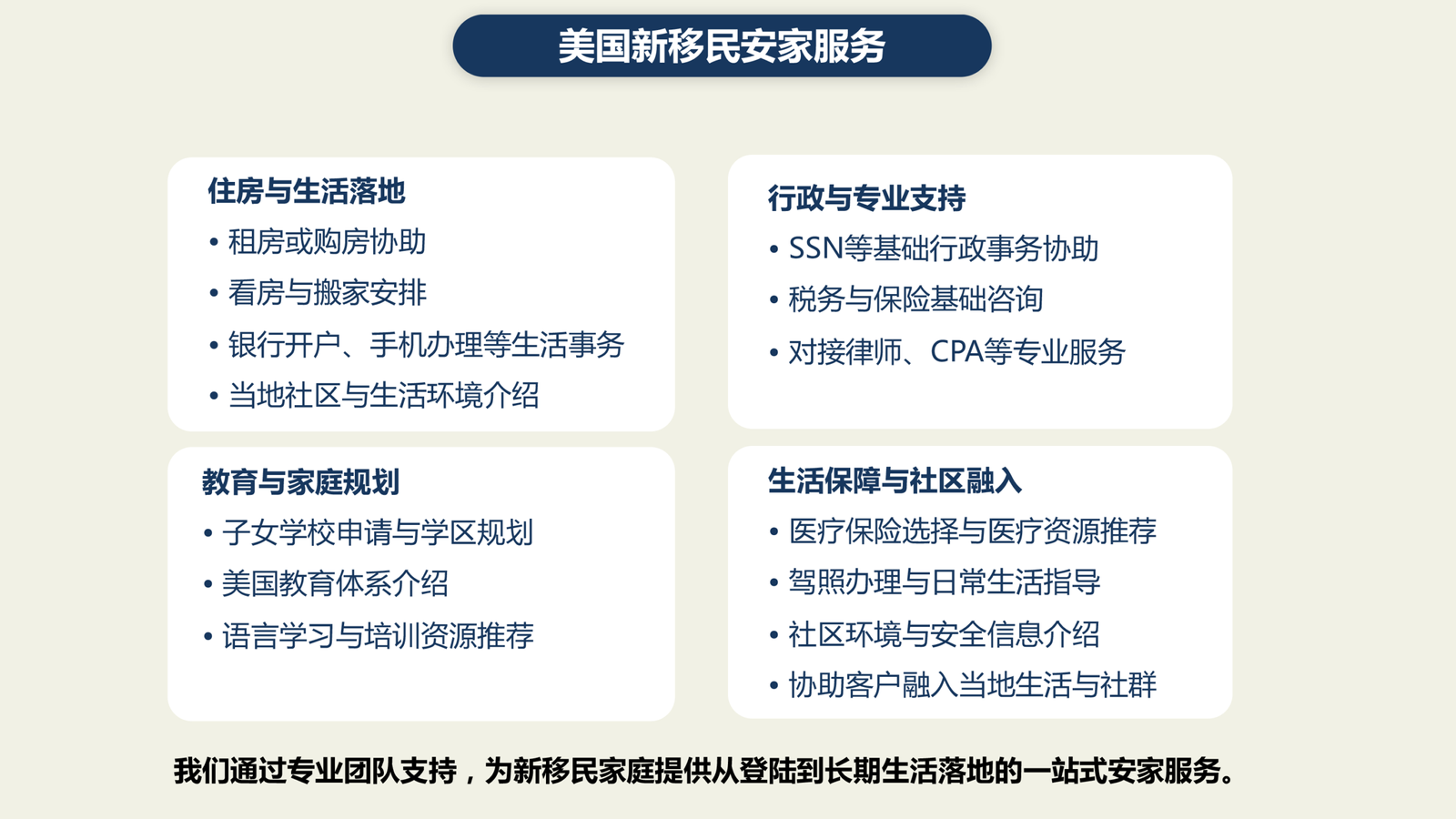 美国新移民安家服务